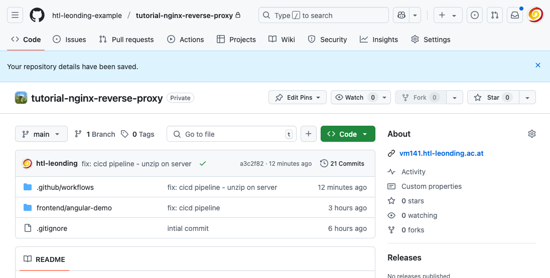 Now the deployment of the frontend is done via GitHub Actions and we can check the server. We see, that the website is served via https and the certificate is valid.